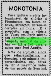 Existe uma citação de Mário Julio Neto (filho de Mário Filho) possivelmente relacionando o título vascaíno a um mundial de clubes. Contudo, é uma frase bem confusa e não dá pra tirar conclusões a partir dela.